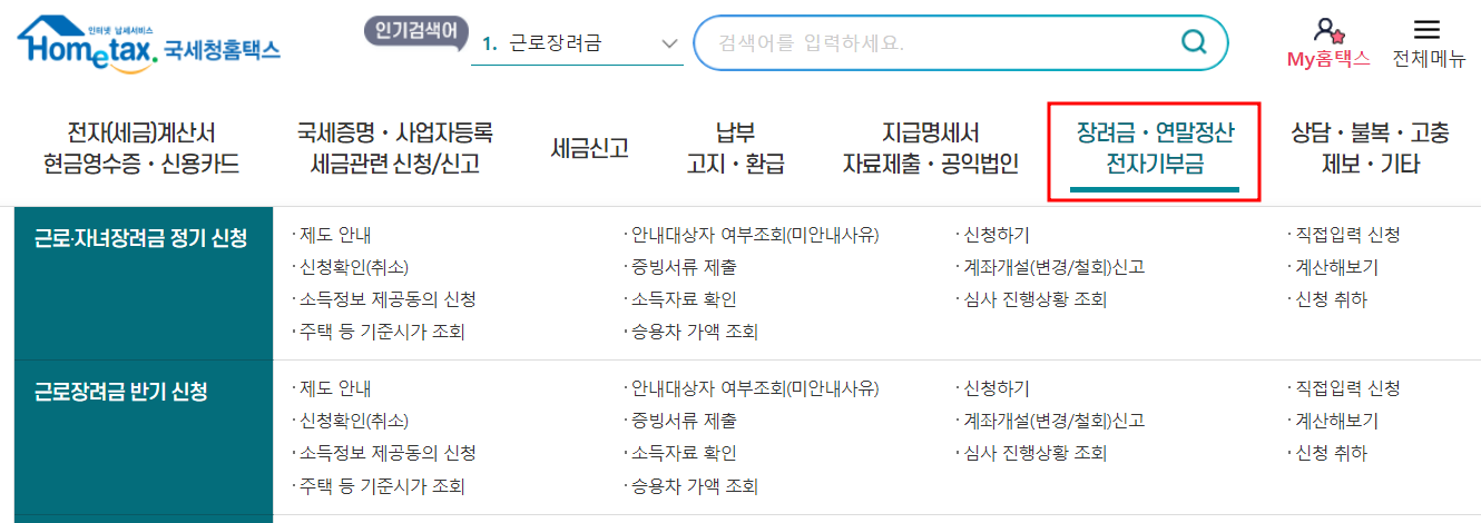 ③ 홈페이지 상단 메뉴에서 [장려금·연말정산] 항목 선택