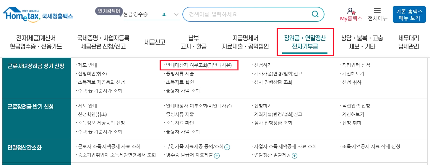 근로장려금 지급대상자 확인 방법