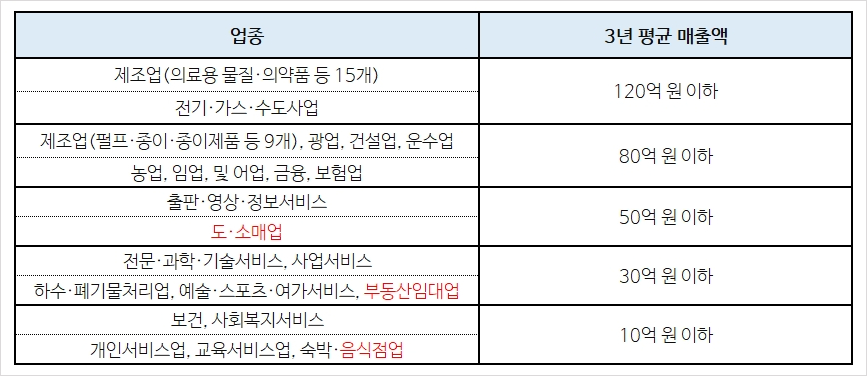 이를테면, 요식업 같은 경우에는 최근 3년간 연평균 매출액이 10억 원 이하일 때 '소상공인'으로 구분되고 있습니다.