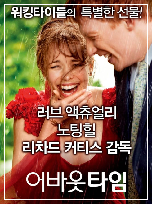 리처드 커티스 감독의 어바웃 타임은 2013년 12월 5일에 개봉했는데 잠깐 흥행한 게 아니라, 적지도 많지도 않은 관객수를 유지하며 한 달 넘게 극장가에서 롱런한 보기 드문 작품이다. 대표적인 로맨스 코미디 작품인 만큼 특히 개봉 4주 차에 해당하던 크리스마스를 포함해 연말 기간 동안 커플들의 호응이 매우 좋았다.