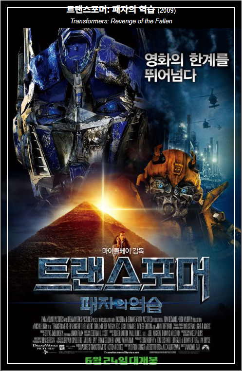2년 만에 돌아온 트랜스포머 시리즈 패자의 역습은 블록버스터 영화들이 2009년 여름에 대거 개봉할 때쯤 나왔는데 1편이 엄청난 흥행을 기록했기에 기대작으로 손꼽히며 전 세계 팬들에게 폭발적인 관심을 기록했었다. 솔직히 너무 궁금했던 게 로봇들을 어떻게 더 업그레이드해서 보여줄 건가였다. 전편에서도 상상 이상이었는데 과연 이걸 뛰어넘을 수 있을까.